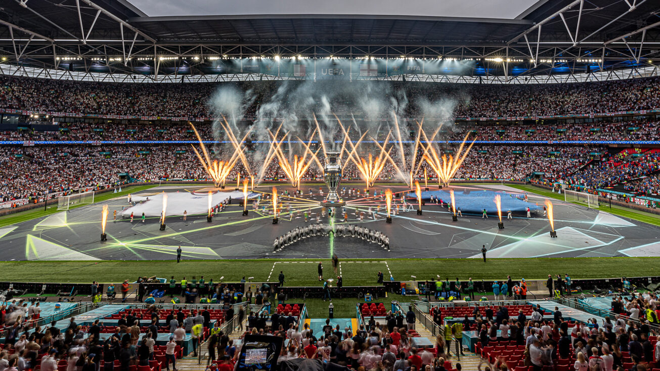 Working with Europe’s leading industry suppliers and talent, we developed an ambitious closing ceremony that celebrated the unique qualities of this very special tournament. The first to be hosted in 12 cities across Europe and the first major football tournament post pandemic. Our ceremony opened with a video countdown that journeyed across Europe, landing centre pitch on the hallowed turf of Wembley Stadium, exploring the very DNA of the trophy and the fans that sit at it’s core. London was honoured with a fanfare from the Band of the Coldstream Guards and a fly by from the world-famous Red Arrows.