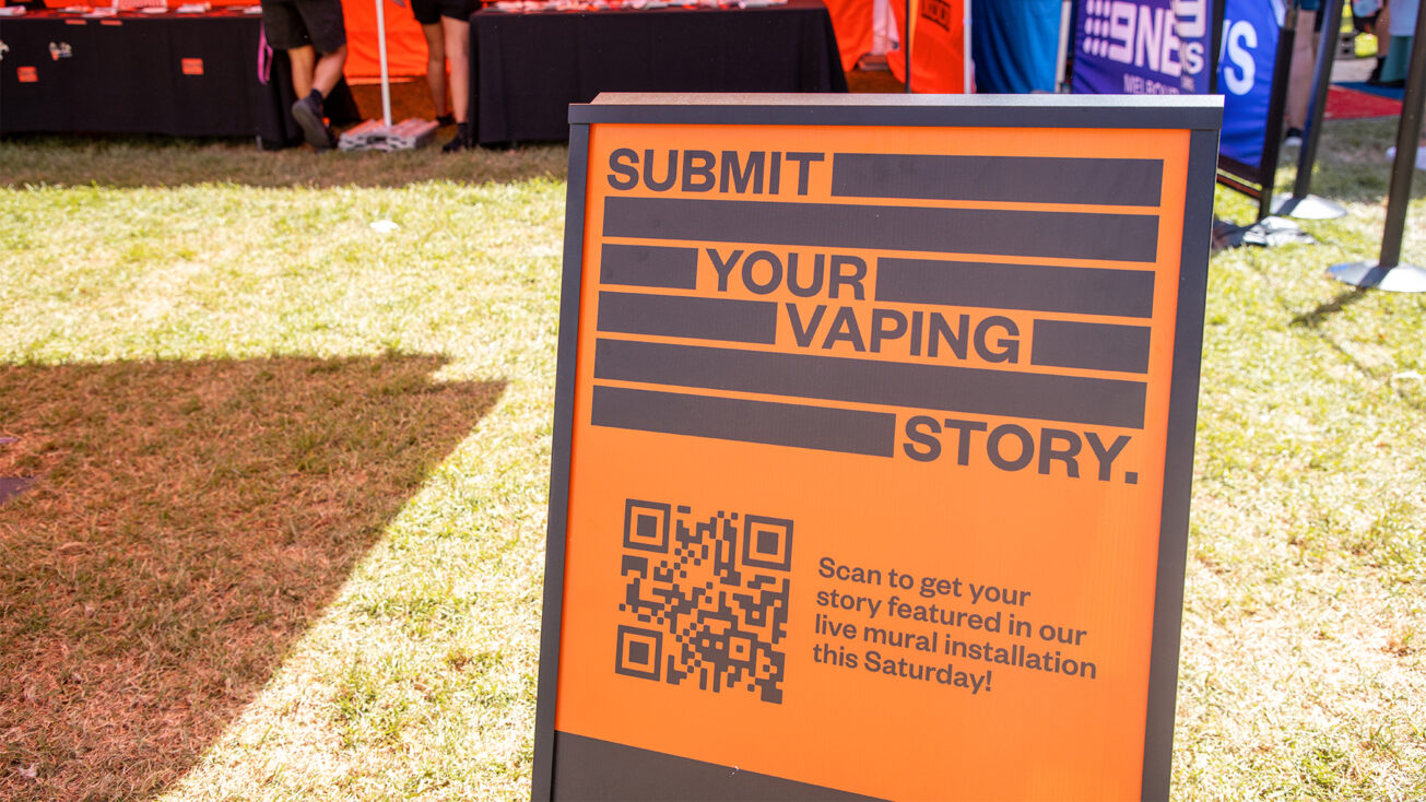 KOJO produced a fully integrated brand experience across high-traffic, youth-facing areas, including a branded skatepark, a 6x3m marquee, toilet decals, umbrellas, banners, and a fencing/grandstand wrap. A standout feature was a large mural on the skate ramp paired with a live artist activation where young people’s anti-vaping messages were transformed into a dynamic skateboard mural.